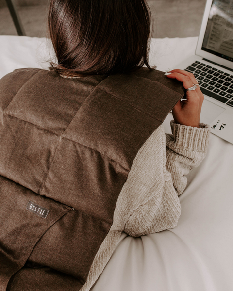Bestie's strategically distributed weight creates deep touch stimulation on the body which can relax us during anxiety attacks and meditations.
